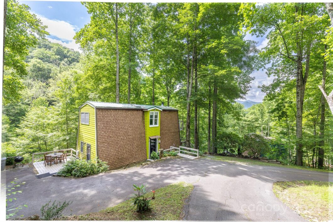 Welcome to “Getaway Chalet” in Maggie Valley! This charming A-frame comes fully furnished and is the perfect turn-key vacation home or investment property (short-term rentals permitted). This chalet leads with character and convenience. Each room is perfectly curated creating a cool and relaxing vibe. Cozy up with a book by the wood burning stove in the stone fireplace. At 3,900 ft. elevation, feel the cool mountain air while listening to the sounds of the bold stream just outside your window. Enjoy a glass of wine from one of the outdoor spaces while taking in the views and counting the stars. Conveniently located! Don’t forget your skis as you are under 10 min to Cataloochee Ski resort — the road stays plowed / salted during the winter, making trips to the slopes a cinch. Hike the Appalachian Trail, take your chances at Harrah’s Cherokee Casino, explore charming Waynesville or enjoy a day trip to eclectic Asheville. This property is perfect for all your mountain adventures!